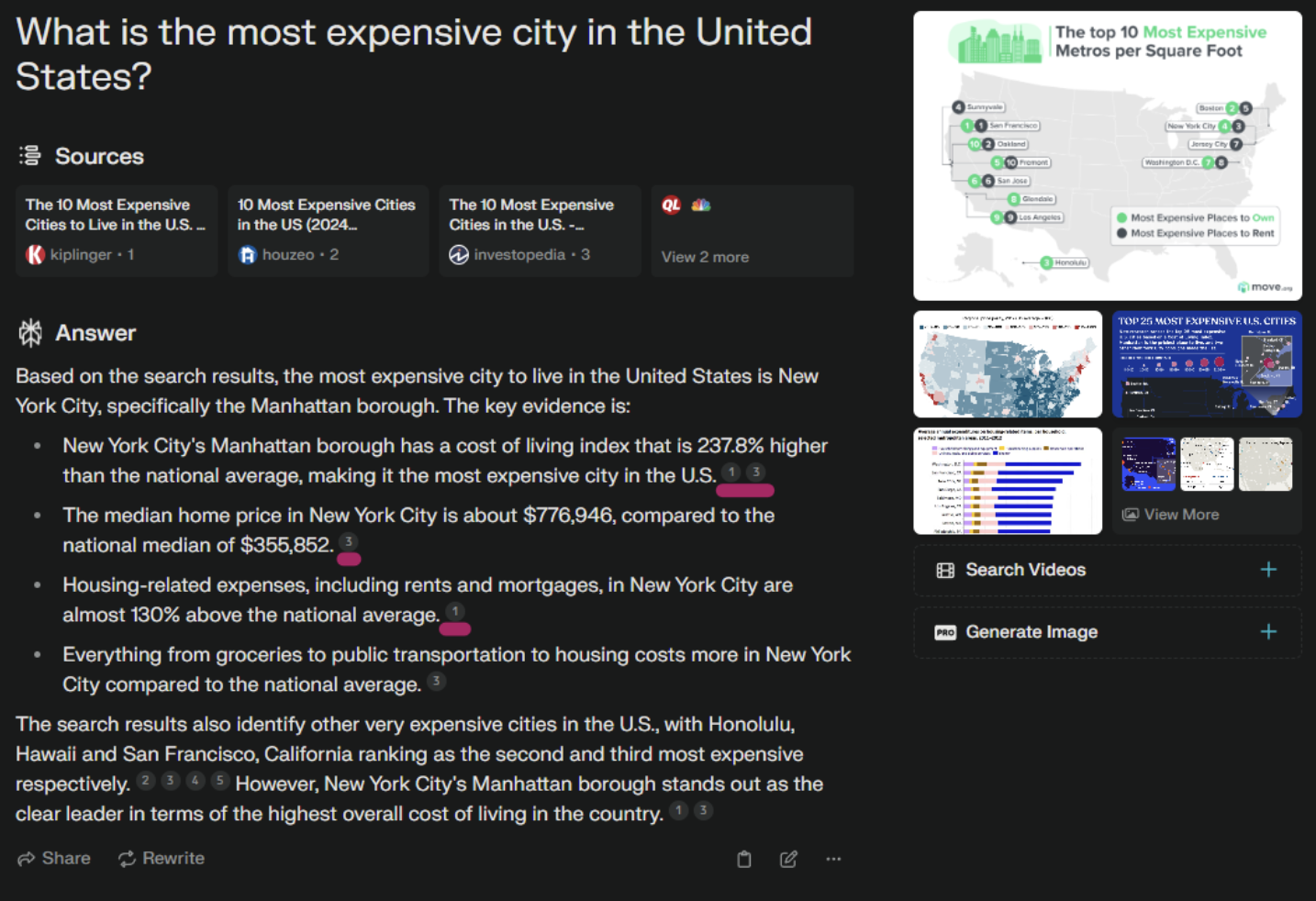 Let’s look at Perplexity.ai as an example. Many answers you receive have numbers to support their claims. Perplexity will link to you if you can provide the data they’re looking for.