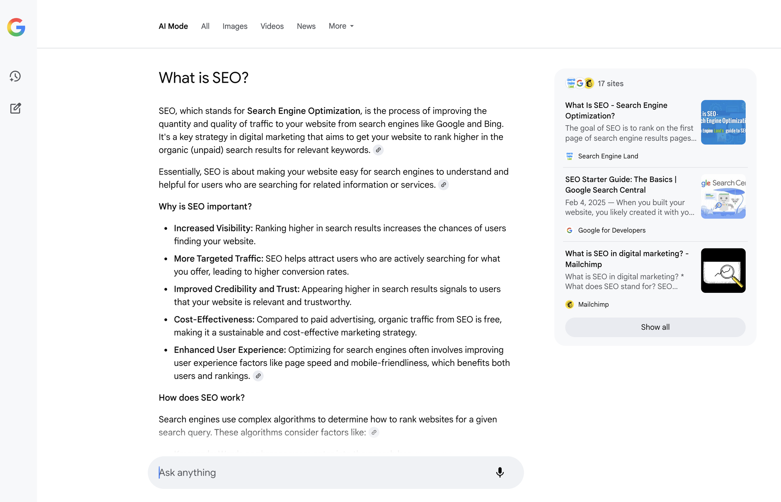 People already ask questions in a casual way, and Google built AI Mode to match that. It also helps surface content that’s detailed, transparent, and trustworthy. That means better answers for users and more value for strong content.